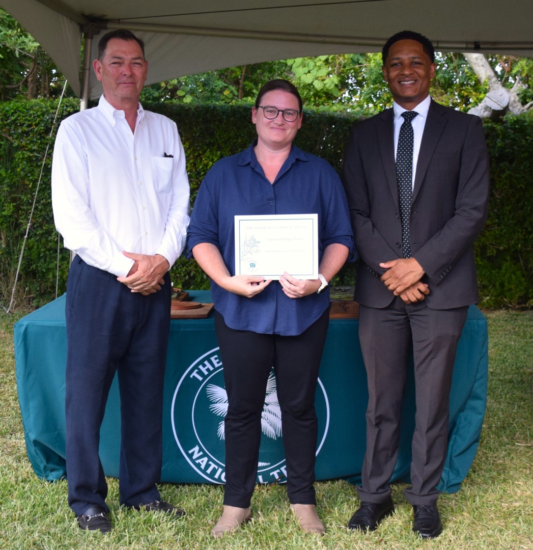 Florence Laino for her active role on the Archaeology Research Committee and her hands-on involvement in Trust archaeological projects. These include an assessment in the Reeve Court basement, running a Dirt Diggers summer camp excavation at Waterville, and assisting with the Smith’s Island Archaeology Project. Her practical expertise and ongoing contributions are helping to shape both Bermuda’s and the Bermuda National Trust’s archaeological strategy.